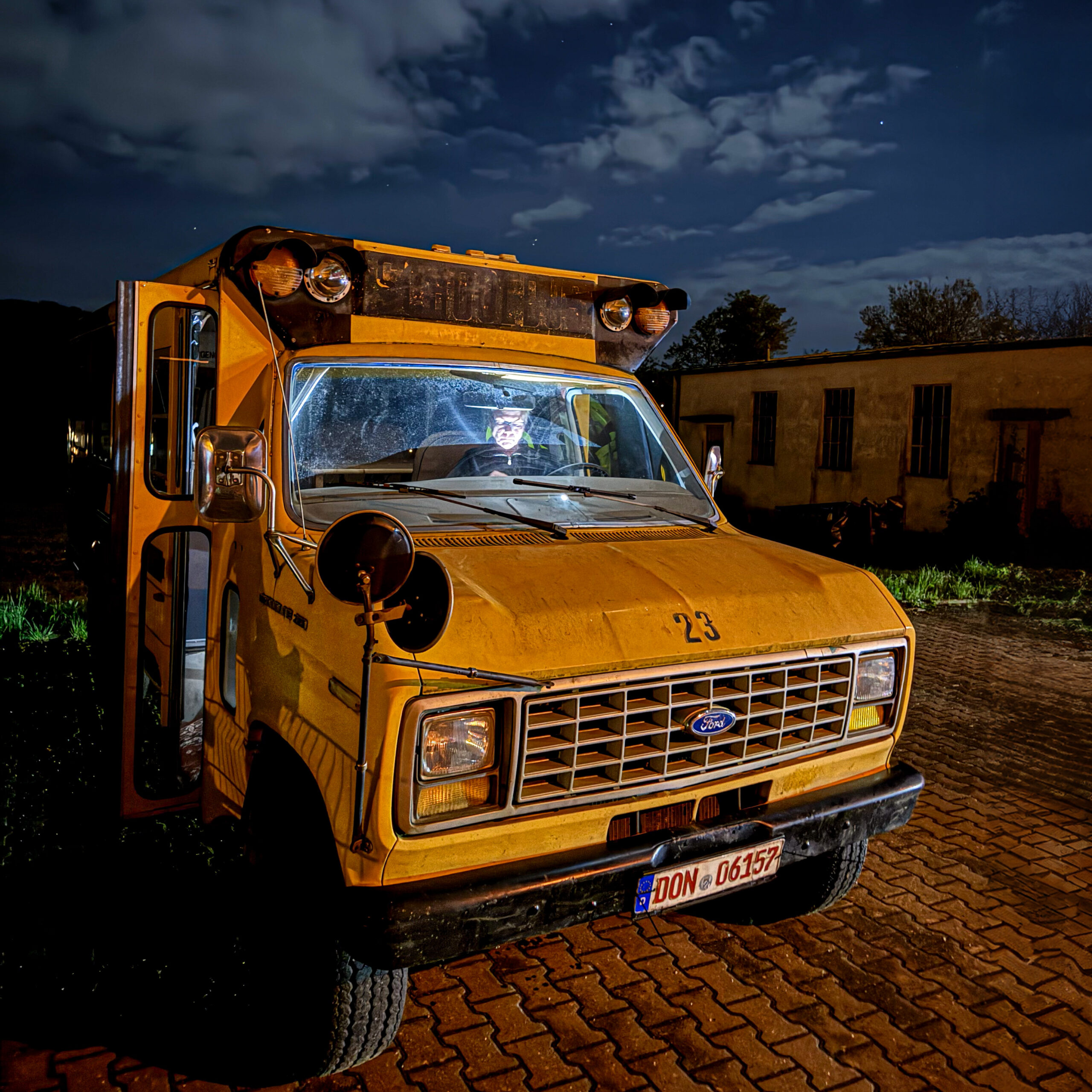 Unser Schulbus stand noch bei Matthias Heidgerken in seiner Werkstatt in Bad Freienwalde. Dort ist er für einen Kabel 1 Clip gepimt worden. Jetzt war es aber langsam an der Zeit, ihn zu uns nach Donauwörth zu holen.